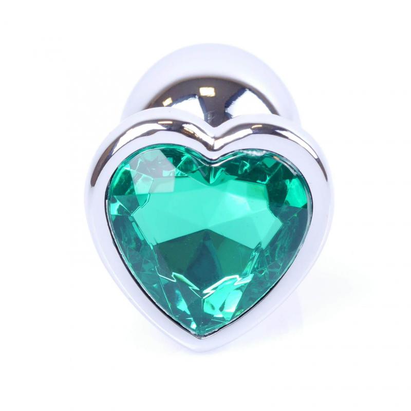 Boss Series Jewellery Silver Heart Plug Green - zelený anální kolík s drahokamem ve tvaru srdce Kód: 6400051