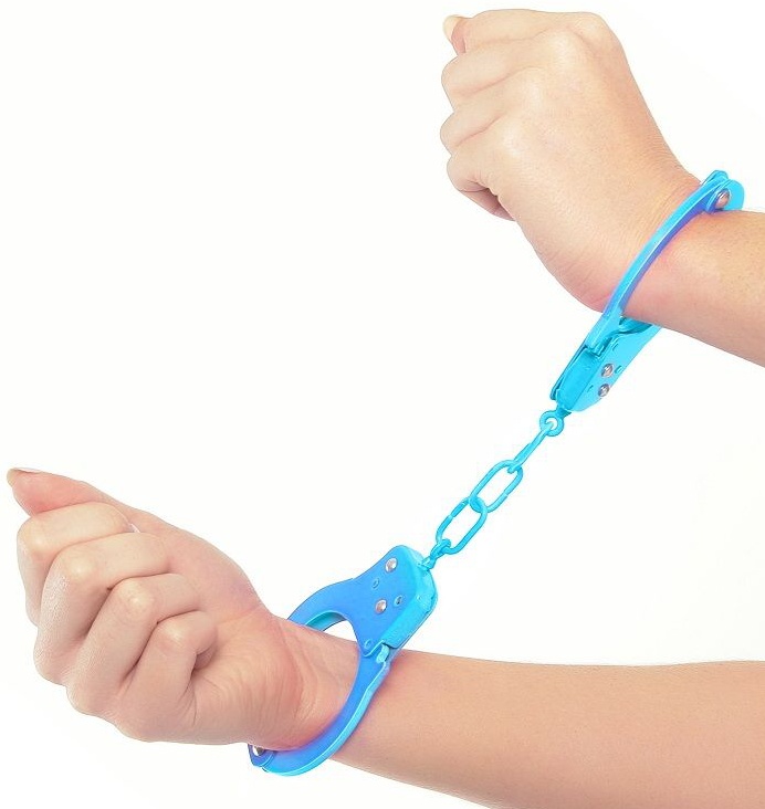 Jsou to modrá pouta na zápěstí spojené s řetězem z chromové oceli.